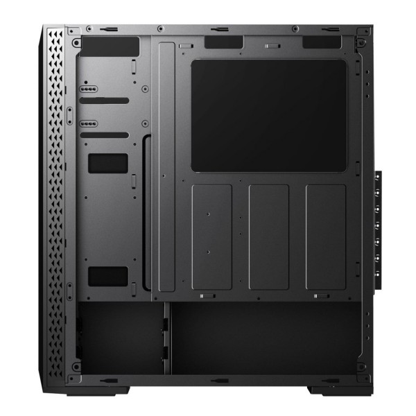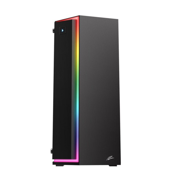 Elegantno ohišje za računalnik z integriranim RGB mavričnim LED trakom pod sprednjo ploščo. Na zgornjem pokrovu je stikalo za preklapljanje med svetlobnimi učinki traku. Leva stranska stena je iz kaljenega stekla, desna je masivna. Filter za prah na vrhu je pritrjen z magneti in ga je mogoče odstraniti.