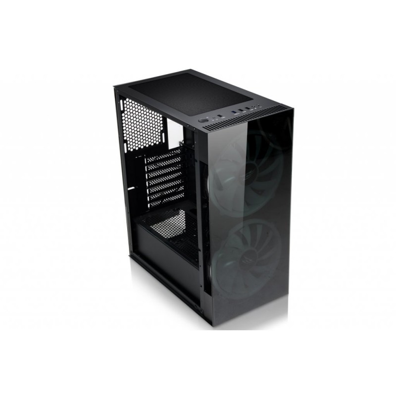 Gaming ATX midi stolp z 2x 200 mm mavričnimi RGB ventilatorji, ki jih upravlja gumb LED na vrhu nadzorne plošče. Njegova sprednja in obe strani sta izdelani iz kaljenega stekla. Omara je namenjena osnovnim ploščam, ki podpirajo platformi Intel in AMD. Poleg ATX je združljiv tudi s formatoma Micro ATX in Mini ITX. Napajalnik se nahaja v spodnjem delu ohišja. Spodnje rešetke so opremljene z drsnim filtrom za prah. Zgornji filter za prah je pritrjen z magneti in ga je mogoče odstraniti. 4-polni ventilatorji se napajajo z MOLEX in so med seboj povezani brez sekvencerja. Ventilatorje lahko upravljate z LED tipko na nadzorni plošči.