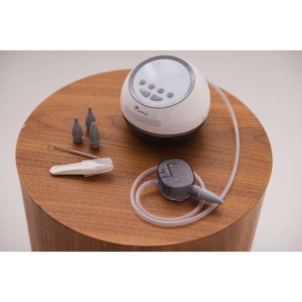 Naprava zagotavlja učinkovito in nežno čiščenje nosu vašega otroka, ima nastavljive stopnje sesanja, ki omogočajo prilagajanje moči po meri vašega malčka, in prikazovalnik ravni napolnjenosti baterije, ki prikazuje stanje napolnjenosti naprave. Dodatne funkcije aspiratorja vključujejo: